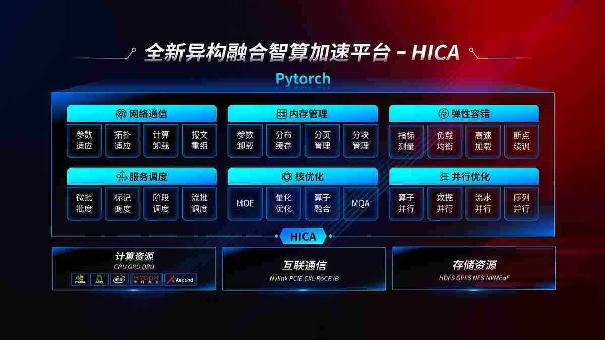 通过自研的服务层、、、、中间适配层、、、以及调度编排算法,,,,采用数据并行、、、、模型并行等多种并行方式,,,,把并行计算任务进行有效的分解,,,使其分别由相应的软件栈和算力资源来承接。。当GPU资源变化,,,,HICA可以实时动态调度计算子任务并调整模型拓扑和架构,,,,以充分聚合各种算力资源。。。。