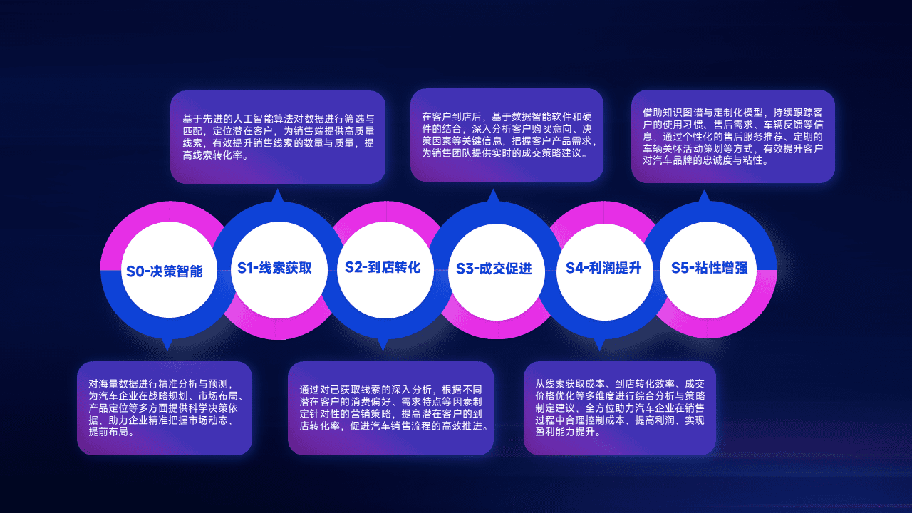 通过拓宽潜在客户来源、、优化线索分配并提高到店转化率,,,,以增强销售效率。。。同时,,,利用线索数据不断优化分析模型,,,有效提升转化率,,,,扩大营销影响力。。。
